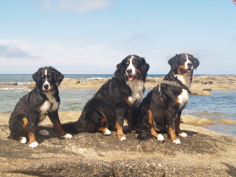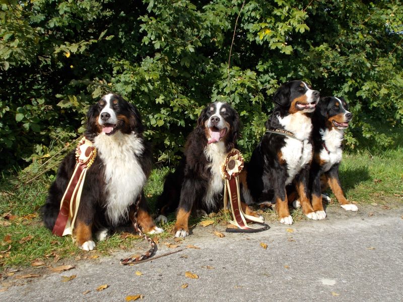 ![]() Oktober 2013, Vier Generationen Berner Sennenhunde : Zarah-Lee, Laysa, Femke und Urenkel Frida ! |