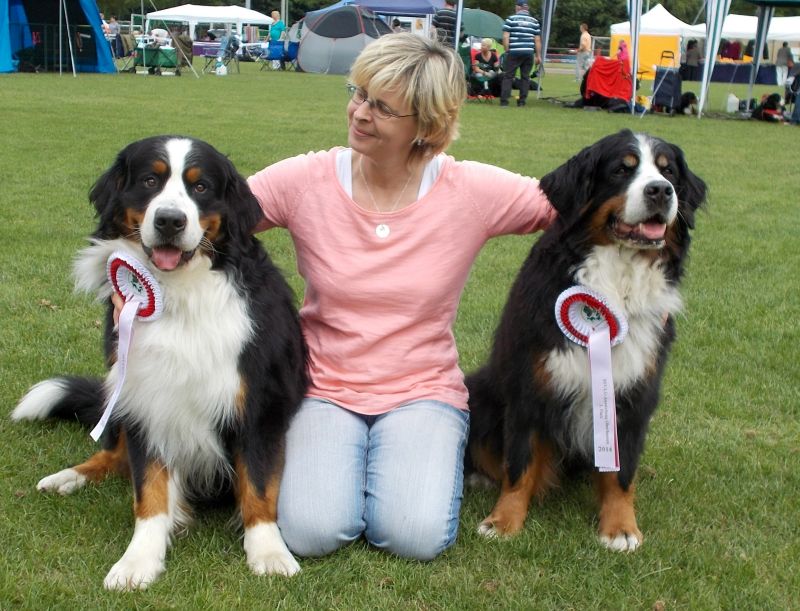 ![]() Iceman (OK, V3) und Belana (VetK I, Platz1) rahmen ihre stolze Züchterin Elvira ein (LG Ausst. Rheinland 2014) |